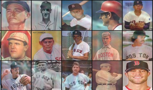 * Players chosen played at least two years as a starter with the Red Sox from 1906-2009. Most of the players that played on the 1946, 1967, 1975, 1986 and 2004 World Series team were included. (A complete list of players with names and images are included with the print)