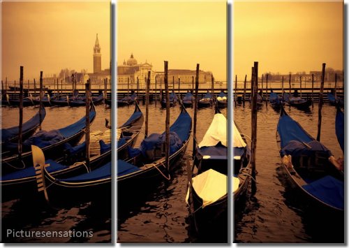 Framed Huge 3 Panel Cityscape Italy Venice Gondolas Giclee Canvas Print even better than expected - highly recommend!!!